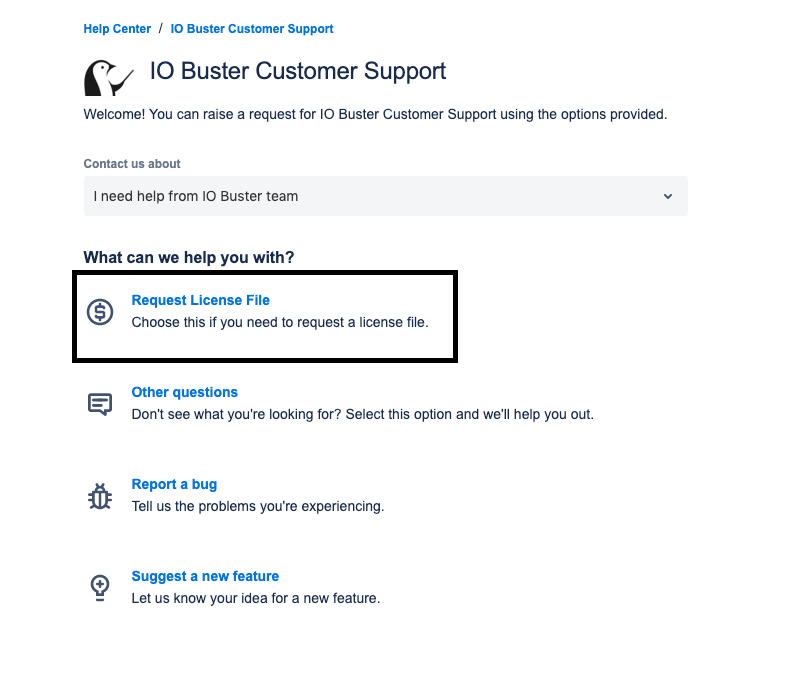 license_request.jsonwill be created under the directory where you started ioBuster Coordinator.Visit the support port to request a new license file.
